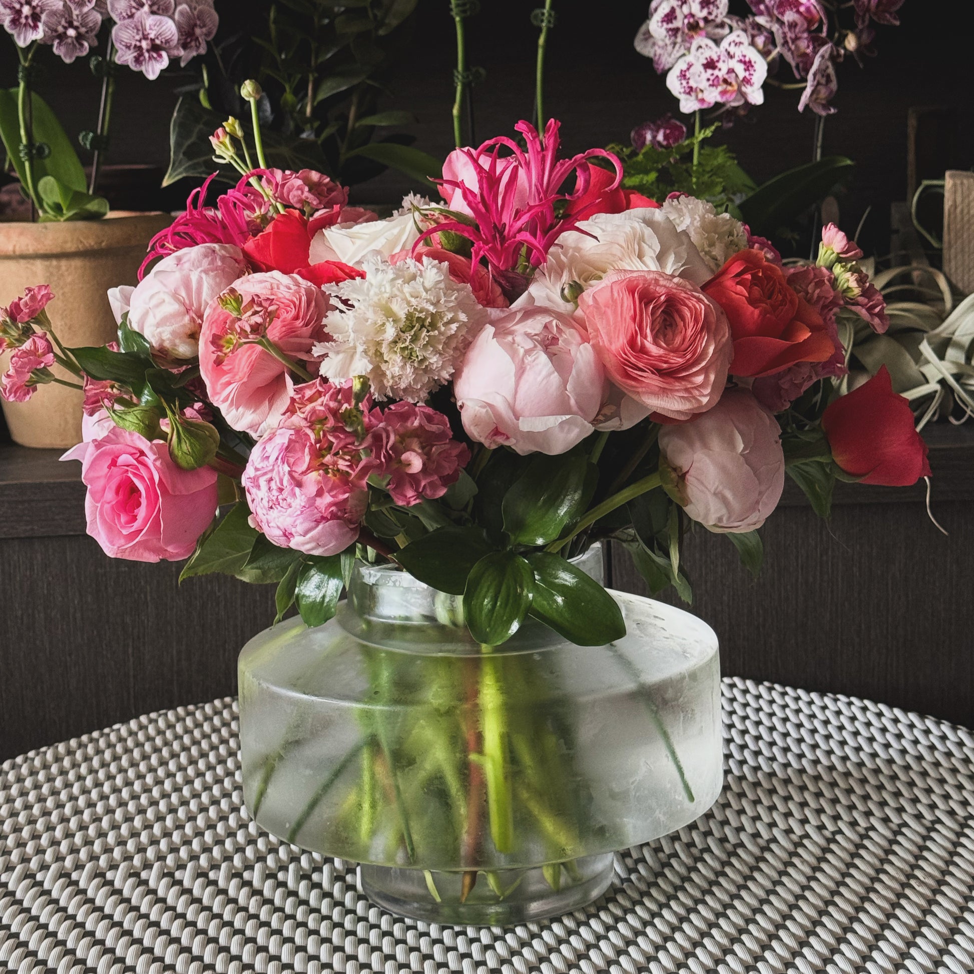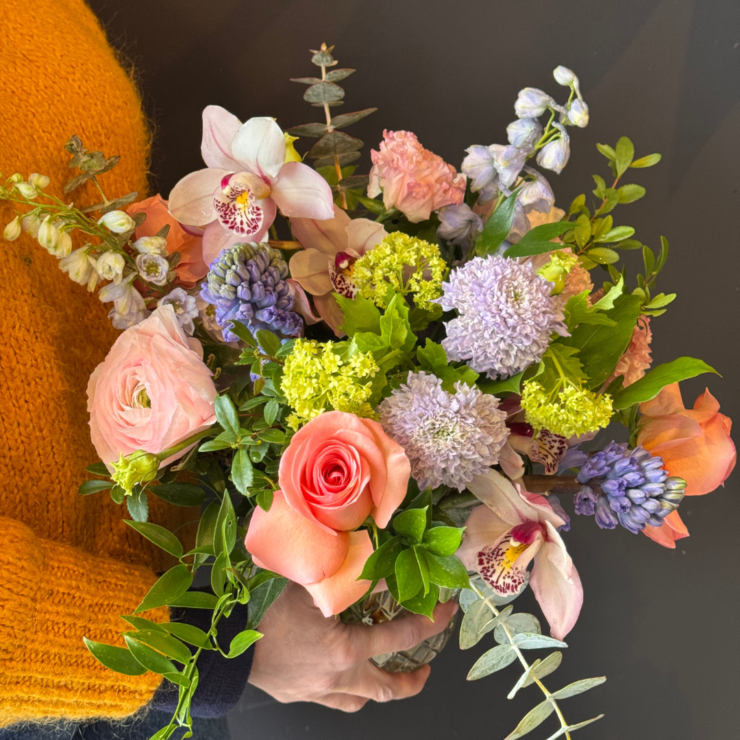 Our Designer’s Choice arrangement is a floral surprise, thoughtfully designed by the expert florists at Suzanne Gardner Flowers. Using the freshest seasonal blooms, each arrangement is uniquely crafted with a refined balance of colour, texture, and style. No two are ever the same — simply beautiful, effortless, and made with care.