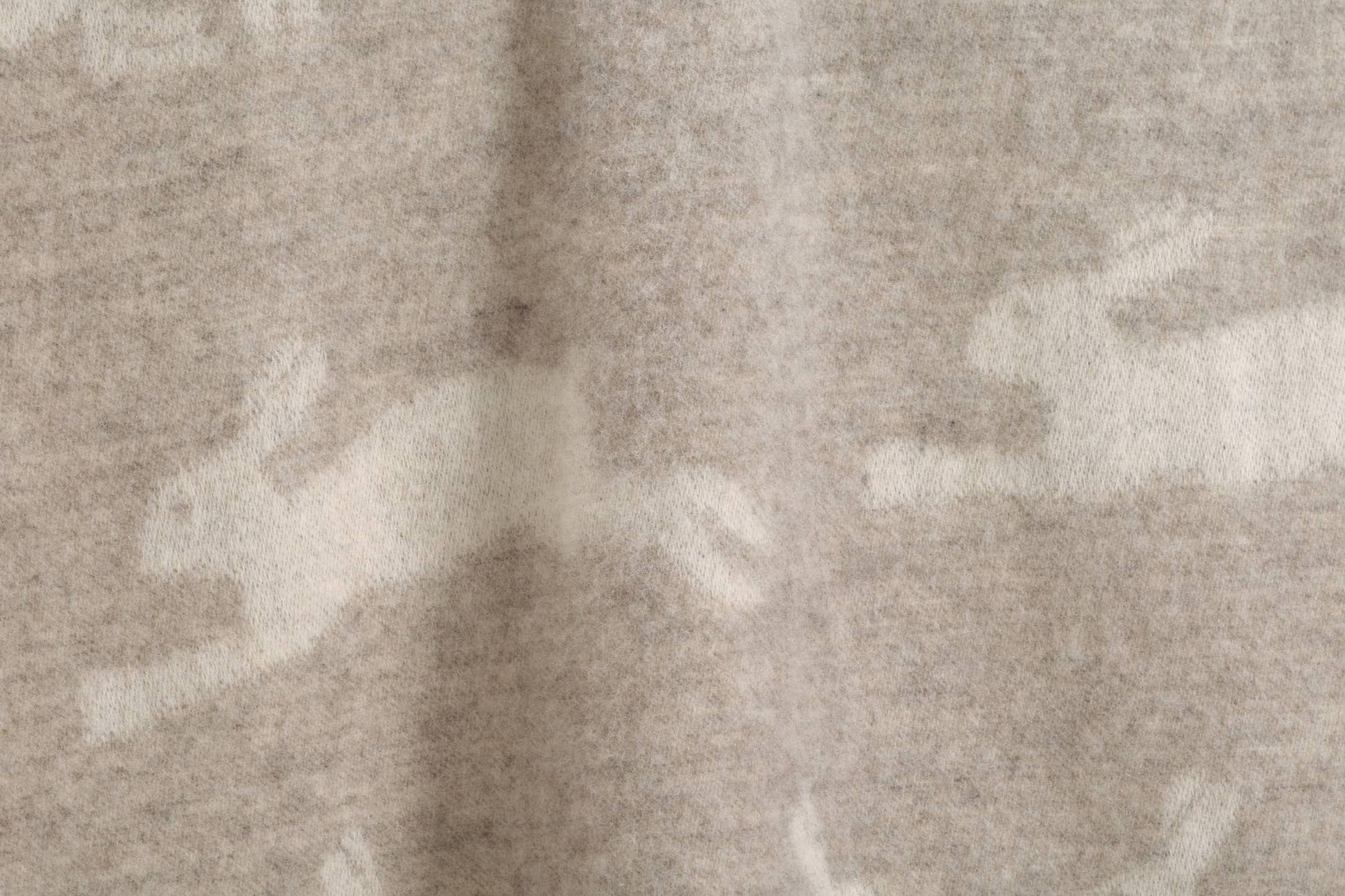 Delicate hares leap through a flurry of snow on this enchanting wool throw — a quiet winter scene captured in soft, earthy tones. Woven from 100% pure new wool and fully reversible, the design inverts on the reverse, offering two beautiful views of the same moment in time.