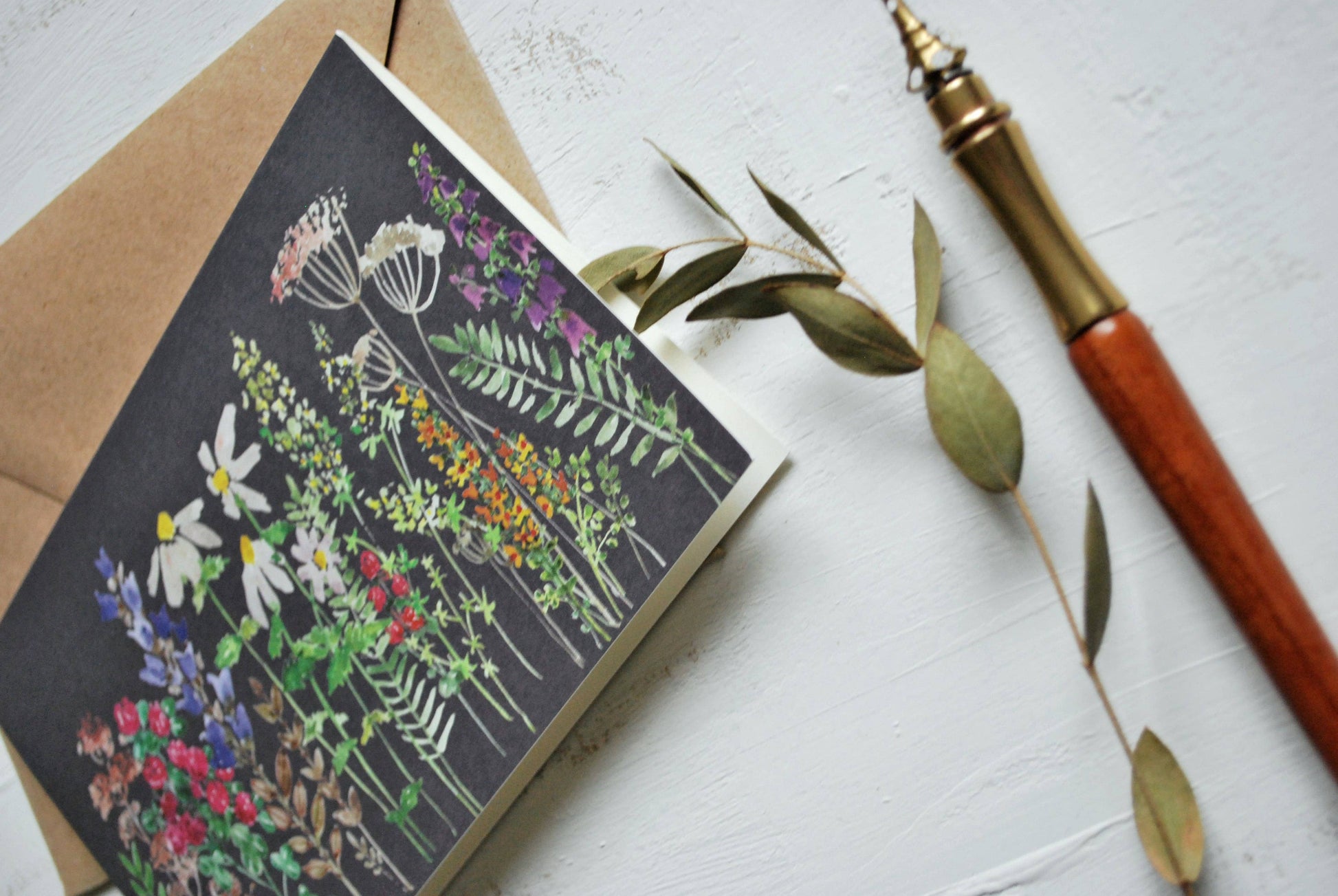Illustrated Greeting card, folded card with my original watercolor painting print of different meadow, rustic style flowers. SIZE: 4"x 6" (10*15 cm) PAPER: beige 400 gsm weight design paper INK: